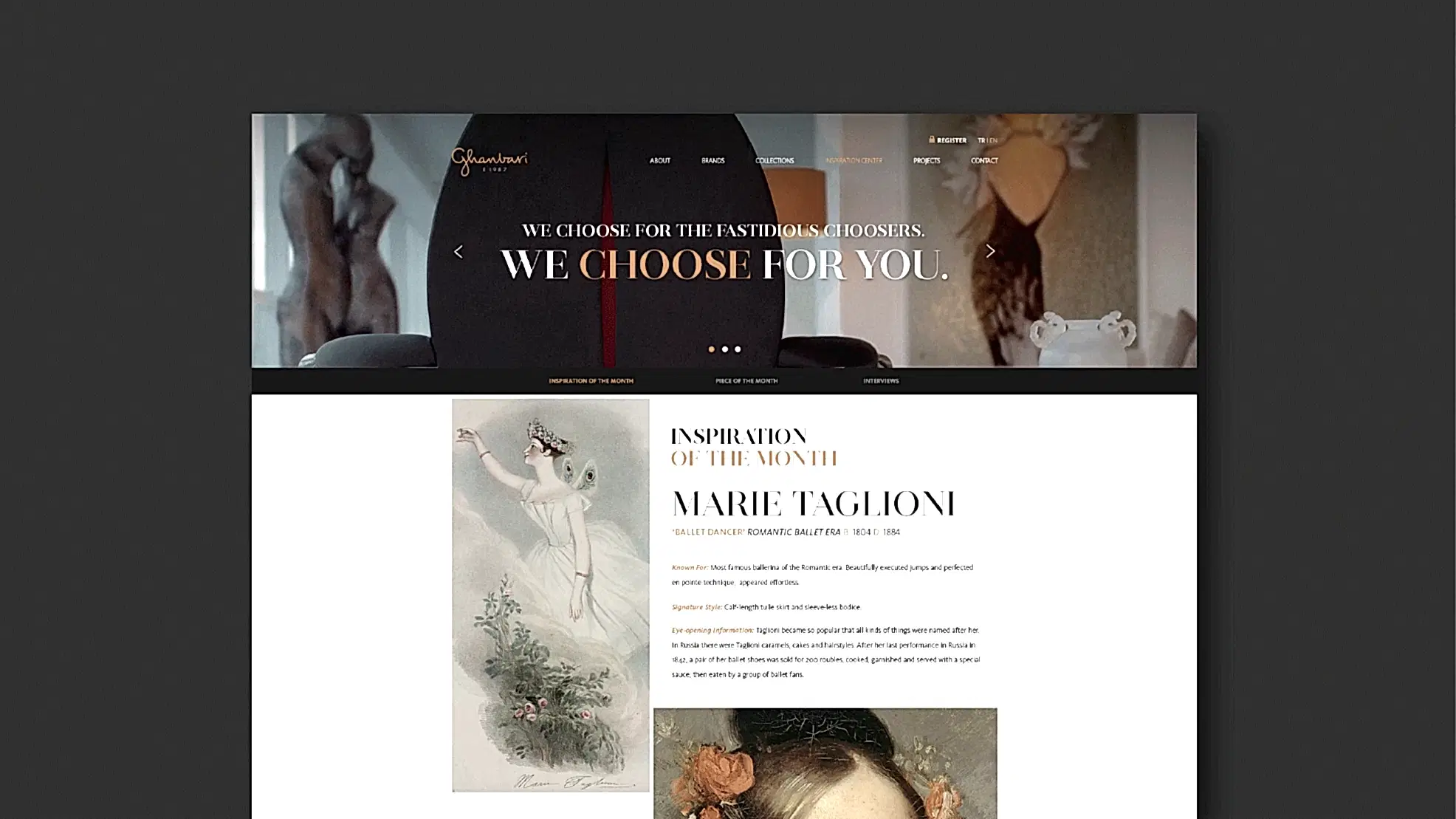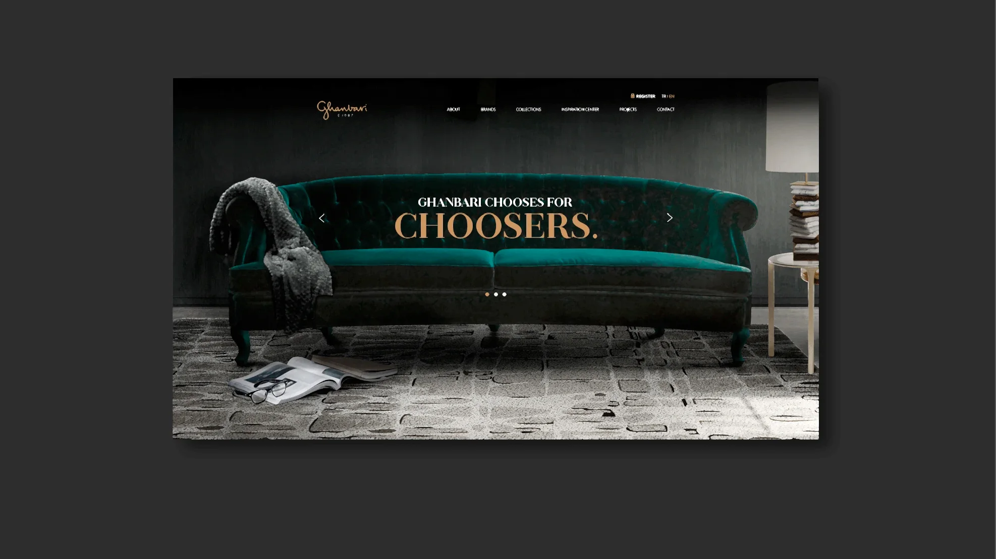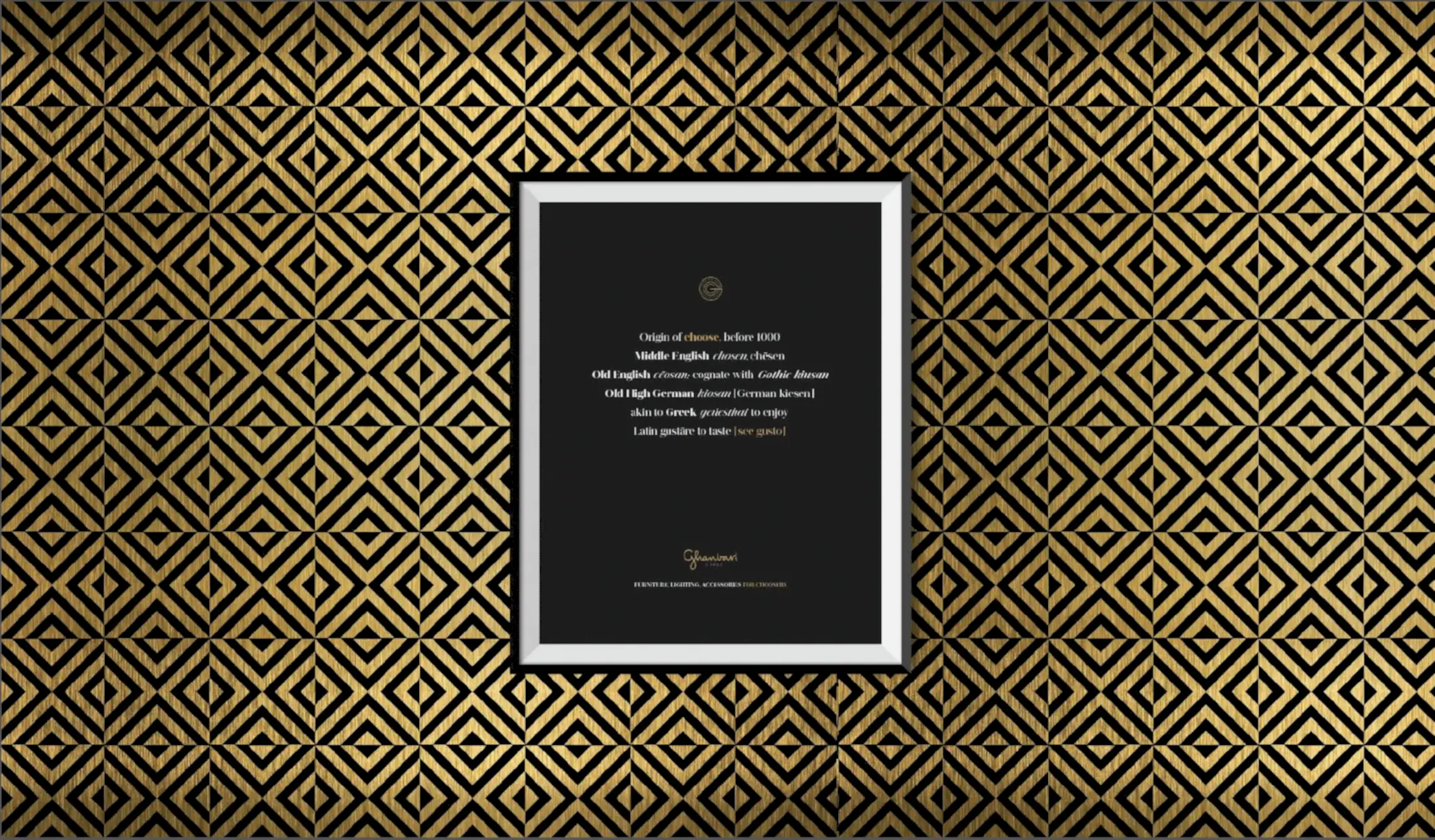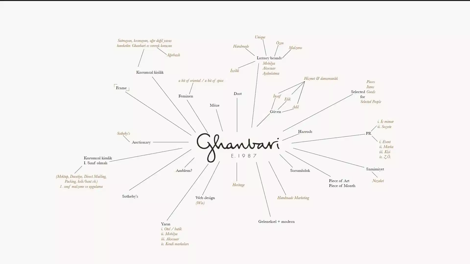 Marka kimliğimizi “seçiciler/choosers” teması üzerine inşa etmeye başladığımızda logodan önce Hazar Mobilya’nın 1987’den bu yana kullandığı isminin değişen sektör ve vizyonlarıyla paralel olarak, değişmeye ihtiyacı olduğunu tespit ettik. Markanın kurucusu Sayın German Ghanbari’nin soyadı bizce bu iş için biçilmiş kaftandı çünkü kendisi sektörde seçiciliğiyle tanınan bir isimdi ve bu algı, yaratmak istediğimiz marka felsefesinin de temelini oluşturuyordu. Üstelik seçmek çok kişisel bir eylemdi, Ghanbari ismi ve sonrasında el yazısı karakterleriyle hazırladığımız logo ise bu kişisellik çerçevesinde bir bütünü oluşturuyordu.
