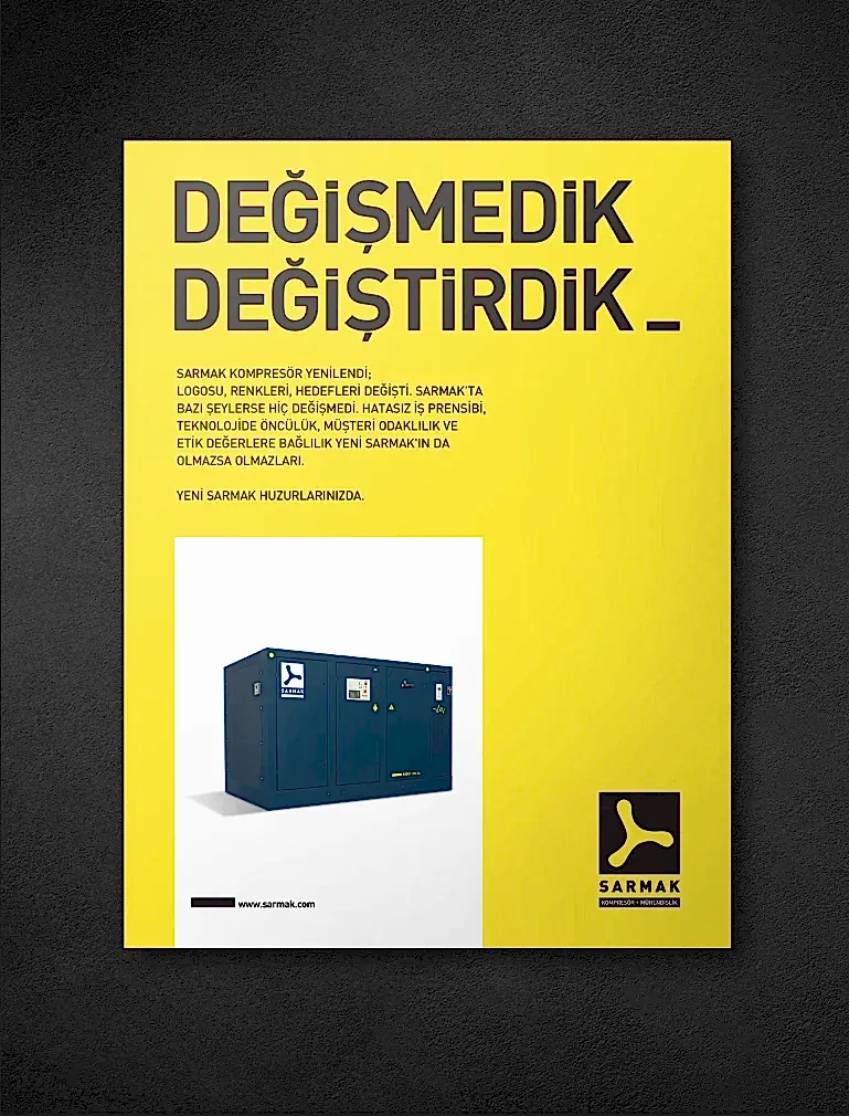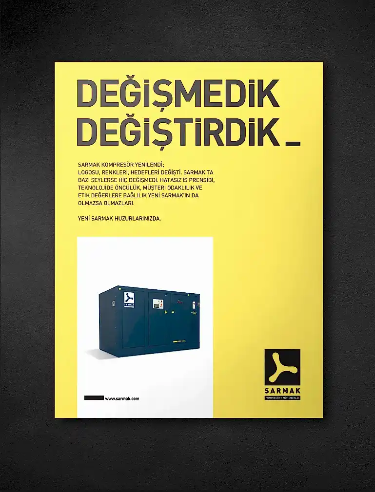 Turgay Saracoğlu’nun, Almanya’da gördüğü öğrenim ve kazandığı mühendislik disiplini ile 1975’de Türkiye’ye dönerek kurduğu Sarmak, kompresör sektöründe yıllar içinde edindiği sağlam konumu marka kimliğine de yansıtmak istiyordu.