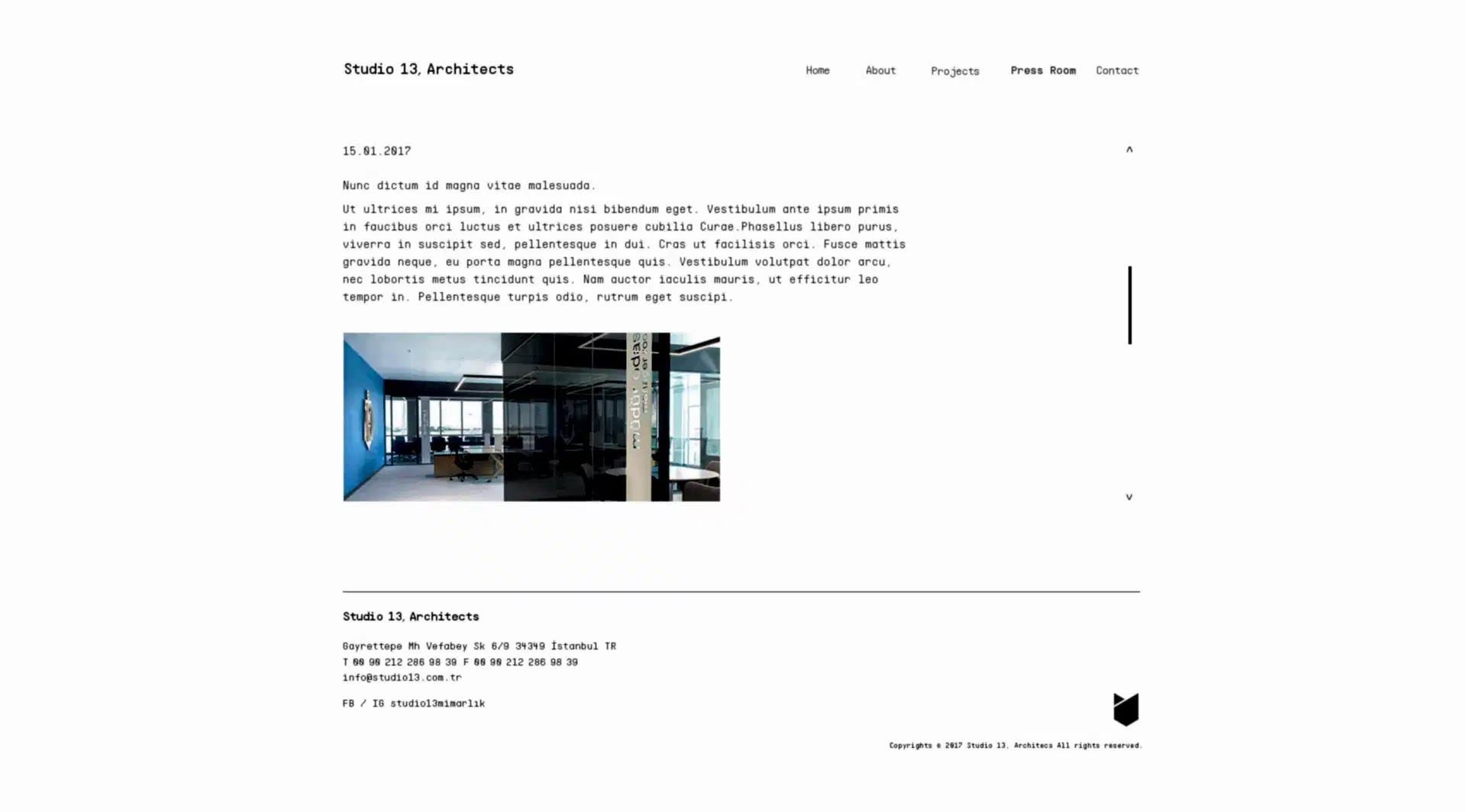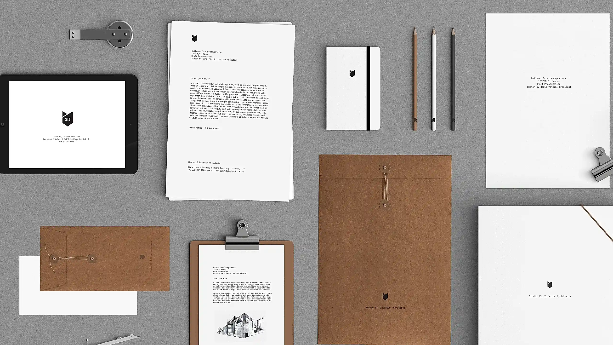 Yaşam ve ofis alanlarını kişiselleştirecek projelere imza atan mimarlık ofisi Studio 13’ün marka kimliğini ve logosunu yaratmak için 2017 yılında birlikte çalışmaya başladık.