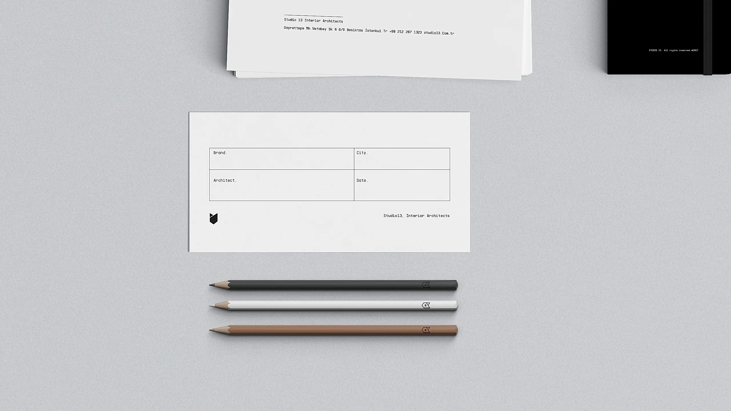 Tasarladıkları alanları yeni hikayelerin yaşanacağı mekanlar olarak gören ve alanı kullanacak insanların hikayelerinden yola çıkarak projelerine başlayan Studio 13’ün marka kimliği ve logosu için biz de kişisel bir hikayeden yola çıktık.
